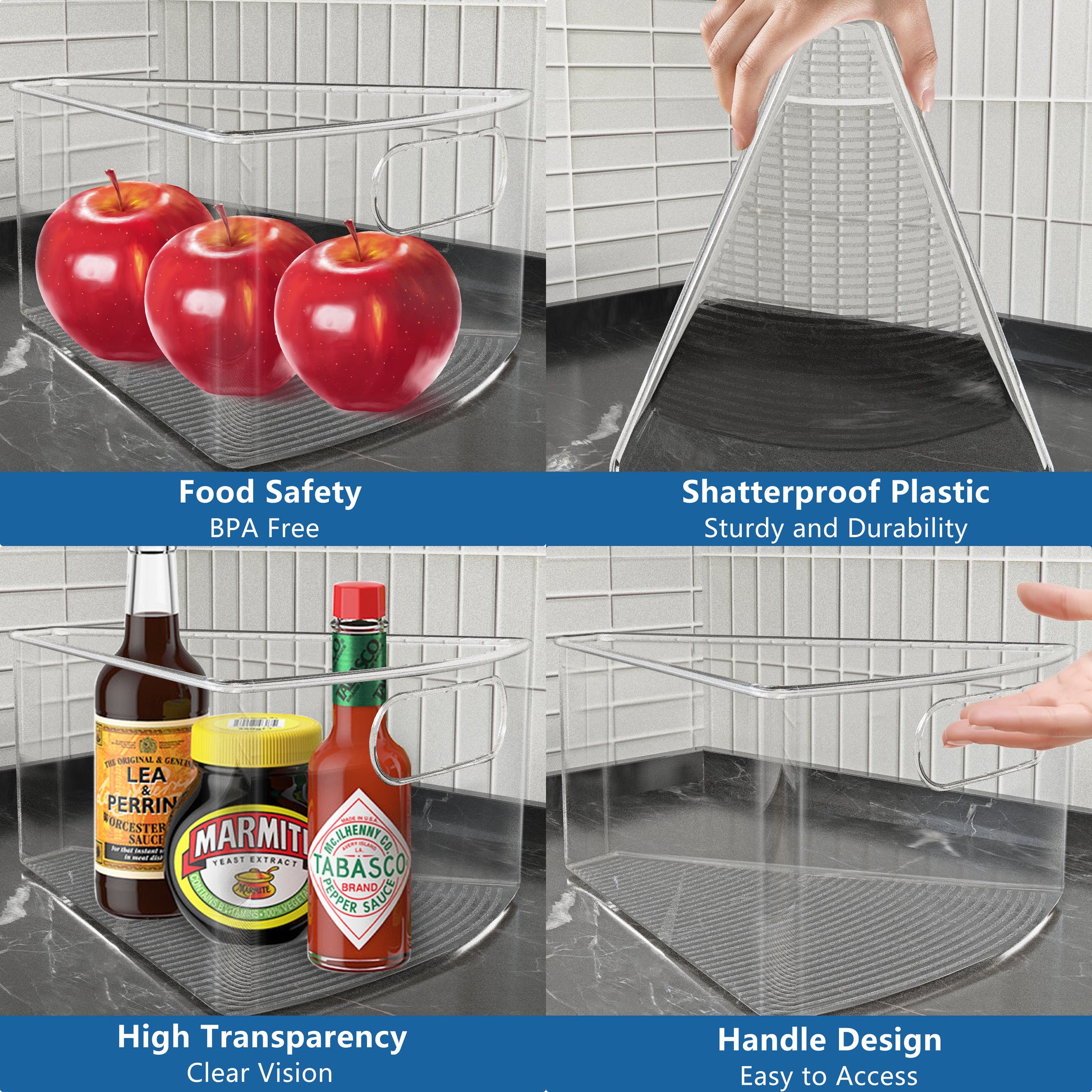 - Visibility & Easy Access: Our lazy susan cabinet organizers are made from highly transparent plastic, allowing you to clearly see and quickly identify the contents inside without having to search through each bin. Each bin features built-in handles that make it simple to pull out or put back into the Lazy Susans, ensuring effortless access to your stored items.