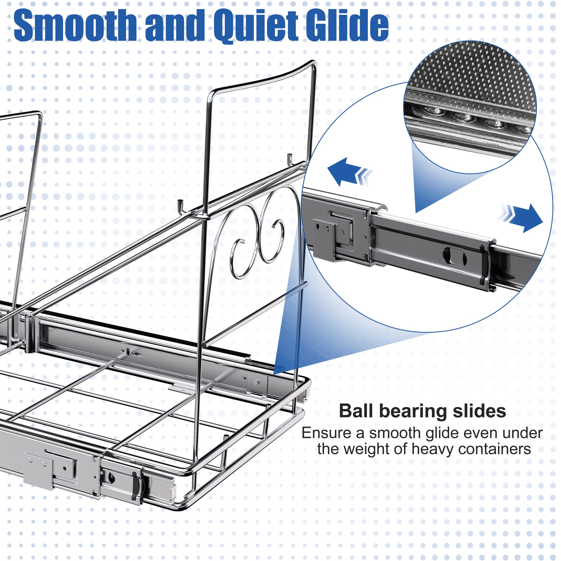 - FULL-EXTENSION SLIDES: Equipped with premium ball-bearing slides, the under counter garbage can shelf glides out fully and silently, providing convenient access and easy cleaning. The hidden design keeps your kitchen neat and clean, while also preventing pets from knocking over the trash.